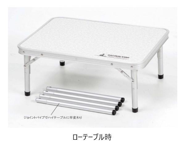 テーブルは2段階の高さに調節が可能!ジョイントパイプでハイテーブルに早変わりします!ジョイントパイプの取り付け・取り外しは簡単なワンタッチジョイント式です。ジョイントパイプを外し、脚部を折りたたむだけのシンプルな構造なので組立・収納が簡単です。 |