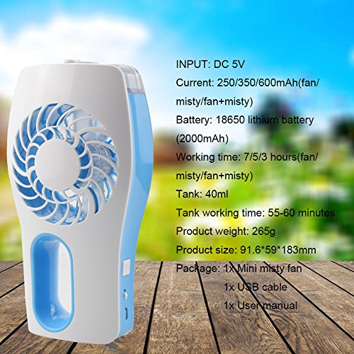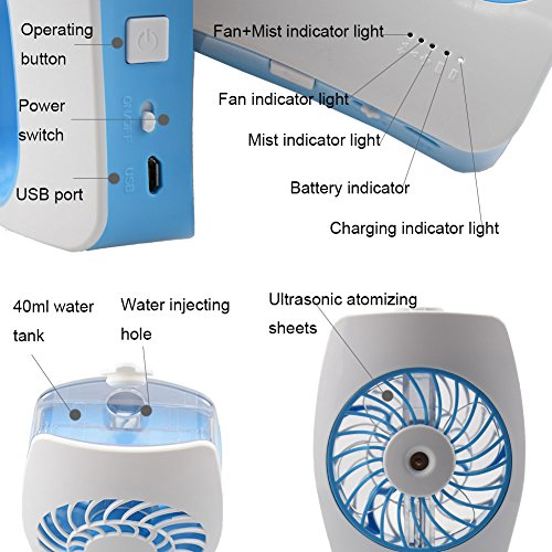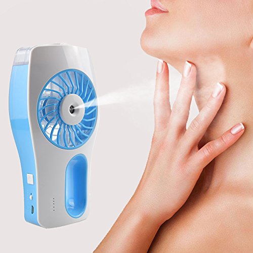 TeTeBak USB Rechargeable Mini Handheld Misting Fan Portable Cooling Humidifier Fan Ultra-Quiet Effective Temperature Decrease Perfect for Outdoor Activities, Travel, and Office Working (Blue)