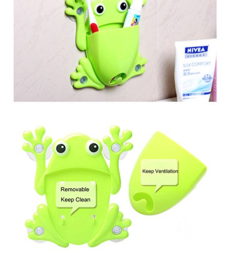 ATGETPRIMA Animal Frog Silicone Toothbrush Holder Family Set Wall Bathroom Hanger Suction …