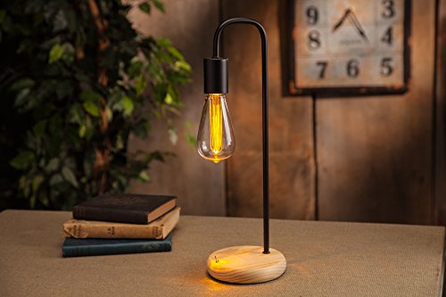 The Gerson Company 93386 Etched Edison Bulb LED Desk Lamp with Metal Fixture & Wood Base Accent St64 Plastic Bulb