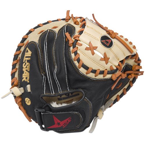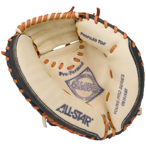 Youth Catchers Glove...Great Quality Mitts! All Star Youth Catchers Baseball Glove features: * Oil softened leather for maximum comfort and strength * Wide heel channels help make the mitts super easy to close * Designed for fast break-in and hard use * Extra soft leather for game-ready feel * 1 Year GuaranteeCM1010BT Model: * Throw: Right-hand * Web Pattern: Closed Web * Size: 31A1/2" * Open back * Color: Tan/Black All Star Gloves...Finest Materials, Hand Craftsmanship!Feature