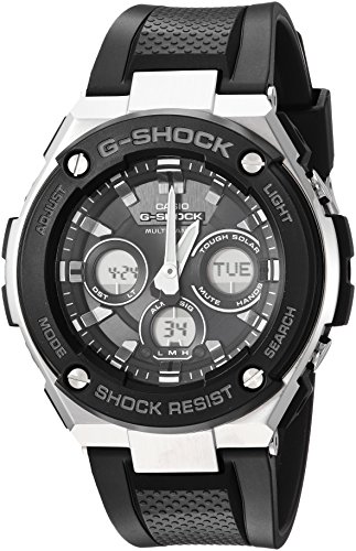 Brand, Seller, or Collection Name:Casio Model number:GST-W300-1ACF Part Number:GST-W300-1ACF Item Shape:Round Dial window material type:Mineral Display Type:Analog and digital Clasp:Buckle Case material:Stainless steel Case diameter:44.2 millimeters Case Thickness:15.5 millimeters Band Material:Resin Band length:Men's Standard Band width:24.4 millimeters Band Color:Black Dial color:Black Bezel material:Stainless steel Bezel function:Stationary Calendar:Day, date, and month Item weight:3.04 Ounces Movement:Quartz Water resistant depth:660 Feet
