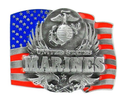 US Marines Enameled Pewter Belt Buckle - NCAA College Athletics Fan Shop Sports Team Merchandise