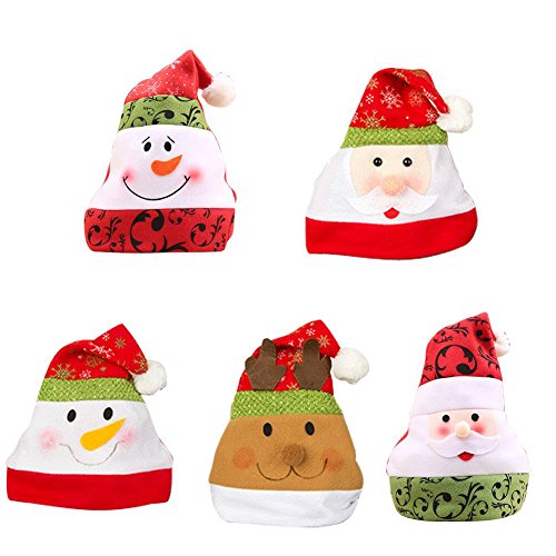 TOAOB 5pcs Fancy Santa Claus Hat For Adult Christmas Holiday
