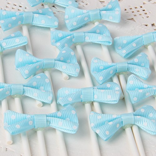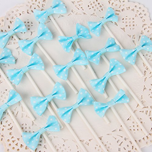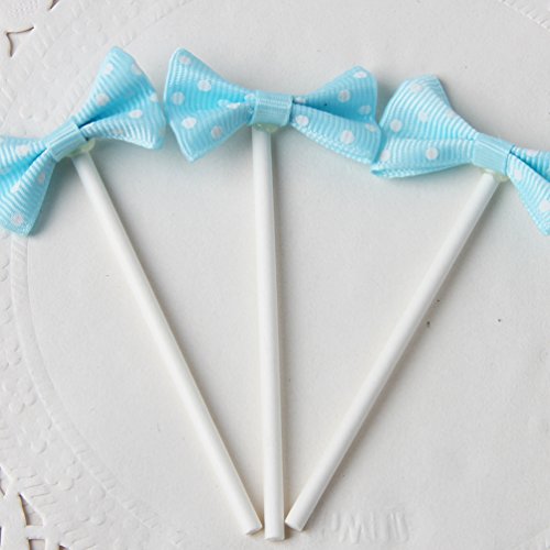 [Pack of 18] Children's Birthday Baby Shower Party Bow Dots Cupcake Toppers Cake Decoration Supplies - Blue
