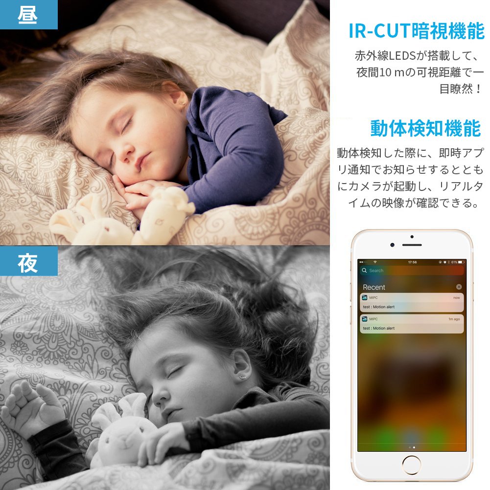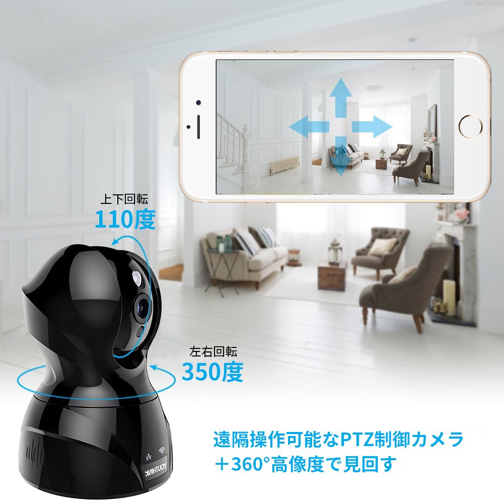 It also has a swinging function and a circulation function of 350 degrees of left / right rotation and 110 degrees of up / down rotation, can swing freely, and the whole room is looked around in real time.