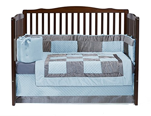 -. Feature : Fabric content: velvet crocodile, minky chenille / Includes: comforter, bumper, dust ruffle, fitted sheet / Fits most standard sized cribs / Machine washable / Fully manufactured in the USA