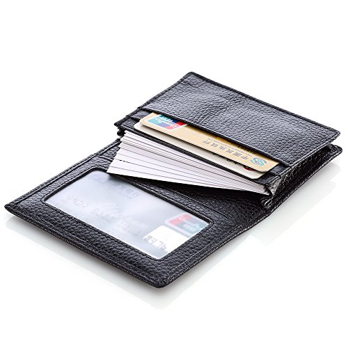 [New release] KINGFOM™ Genuine Leather Litchi Pattern Cover Business Credit Card Holder Wallet 2 Colors (Black)