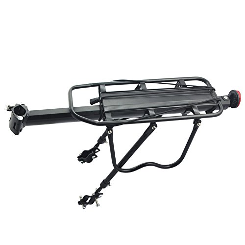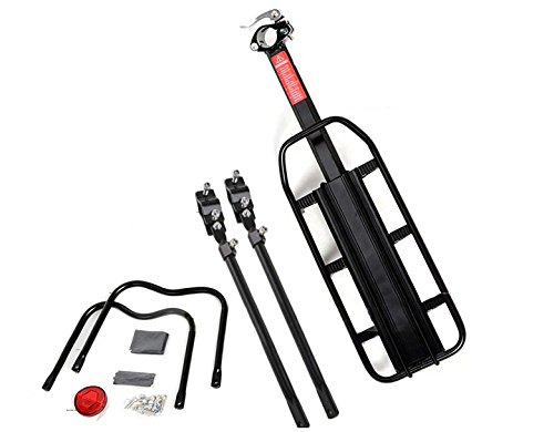 Studio : UPANTECH Publisher : UPANTECH Product Description Material: Aluminum Alloy Size: Rack platform: 35.5cm x 14.5cm(20" x 5.7"); Main Post: 54cm (21.3") Quick release mount is suitable for seatpost diameter under 33mm only. If your bike's seat post diameter is larger than 33mm, this rack cannot fit your bike. thanks for understanding. Quick release mount install at seatpost, easy to adjust. You can adjust the rack via the screws under the rack With side frame, protect your luggage not rubbed by wheel. With rear reflector. 0