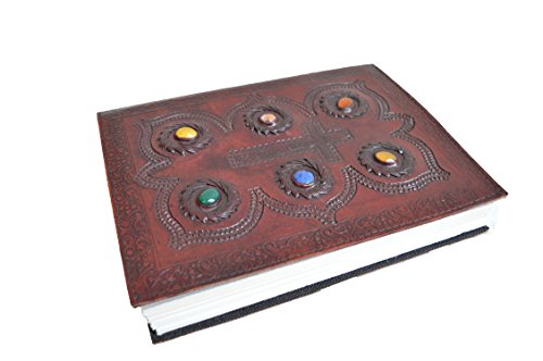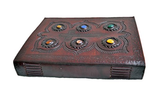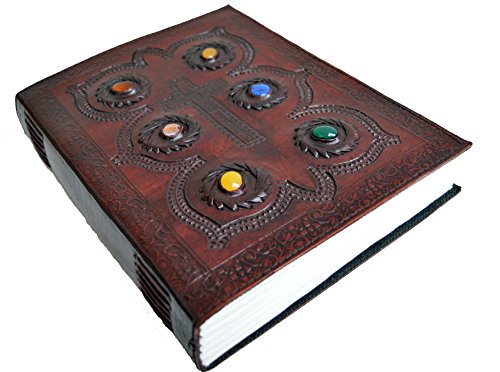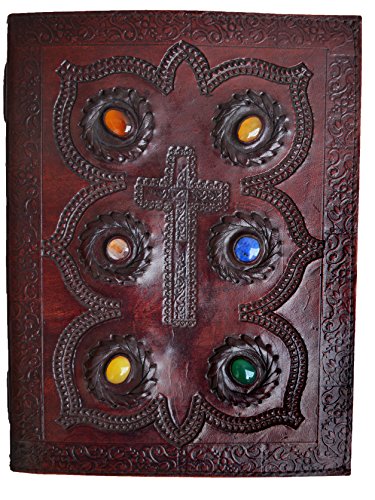 -. Feature : Color: Rosewood . 100% Genuine leather cover, handmade paper used / Refillable and reusable. Size : 7" X 10" / Has six colorful stones and a HAND EMBOSSED cross in the middle / approx 300 pages. / Unique looks makes a perfect gift