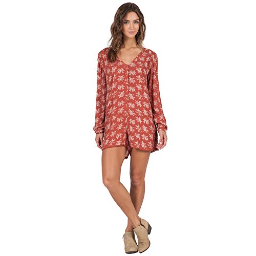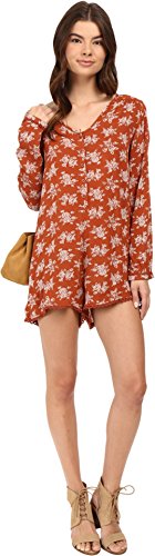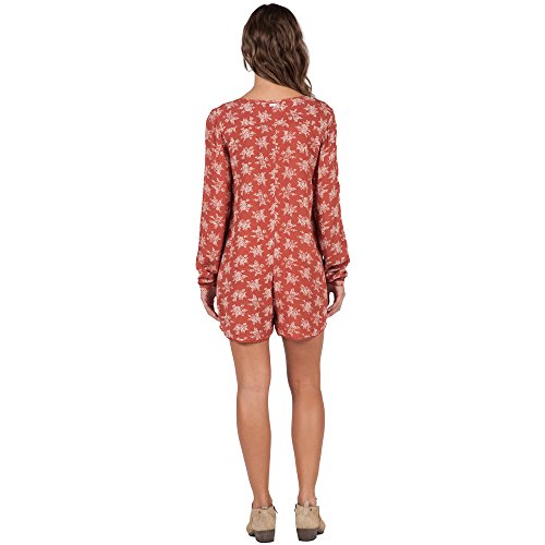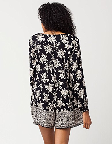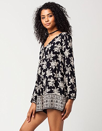 Product DescriptionA fun flattering printed long sleeve romper with button closure front and scalloped trim detail.0