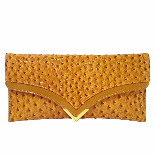 -. Title : Faux Ostrich Patent Leather Envelope Clutch