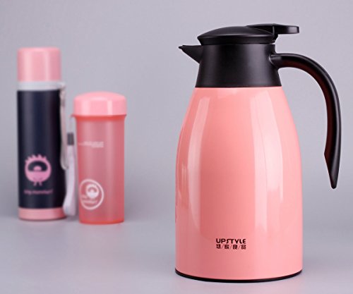 UPSTYLE Thermal Carafe, 34oz Big Capacity Coffee Carafe Double-Wall Vacuum Insulated Stainless Steel Thermos Coffee Pot, Jug Flask, Tea Pot Water Pitcher with Press Button (Pink)
