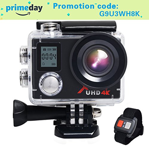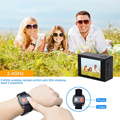 2.4GHz Wireless remote control,water resistant,suitable for surfing,skiing and biking in rain/snow.Dual screens,2 inch high definition back screen that displays and replays good videos recorded,front 0.66 inch monochrome screen shows camera mode, battery power and some camera info.