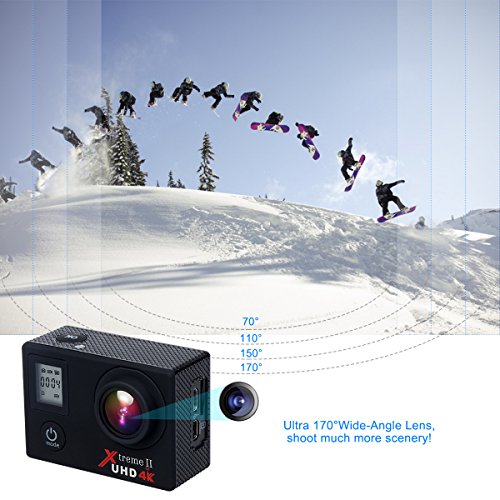 Sony sensor, Campark Xtreme 2 will record your video footage in 4K Ultra HD at 30 frames per second and capture images at 16 megapixels. With a wide angle 170 degree lens, you won’t miss out on any background details and the support of 64GB on an Micro SD card will let you store all your photos and videos right on the camera.