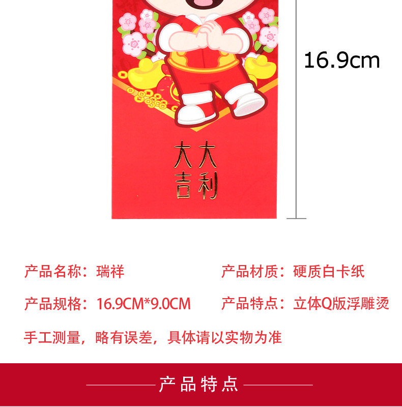 【材质】硬卡纸立体红包,浮雕烫金工艺。