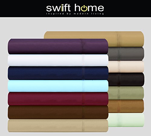 LONG LASTING SHEETS: Swift Home® Bed sheets are made out of 100% double brushed durable microfiber to provide you with amazing softness. Fully elasticized fitted sheet guarantees a secure fit. Deep Pocket fitted sheet is generously sized to accommodate mattresses up to 16".