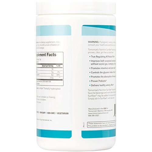 INVISIBLE FIBER: Tomorrow’s Nutrition Sunfiber delivers 6 grams of clinically proven, clear, grit free soluble fiber. It dissolves fast and clear in your favorite beverage and won’t alter the taste or texture of foods.