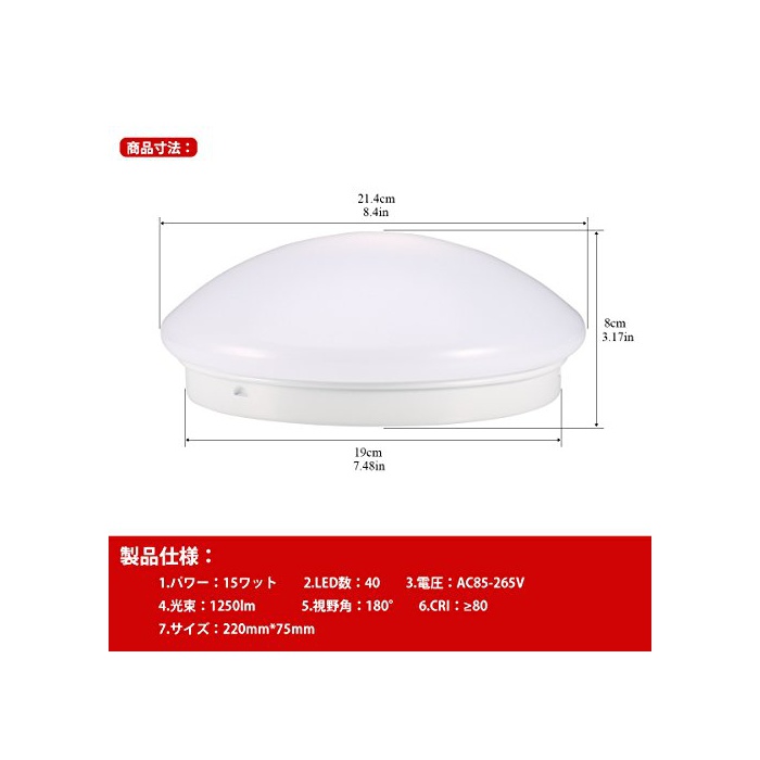 ●색온도:4000k(닛코색)●발광 각도:180°●사이즈:Φ220x75mm ●LED연 색성(Ra):≥80