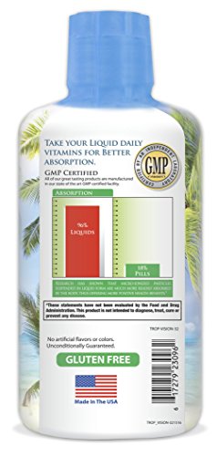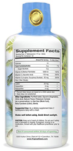Tropical Oasis Liquid 20/20 Vision is a maximum strength, great tasting, once-a-day supplement that keep your eyes healthy and protected. It contains the 3 most powerful antioxidants for your eyes; Lutein, Zeaxanthin, and Astaxanthin? These 3 antioxidants have been heavily studied and shown to keep your eyes healthy and protected from degeneration as you age. Lutein and Zeaxanthin also help reduce eye fatigue and glare / light sensitivity.*