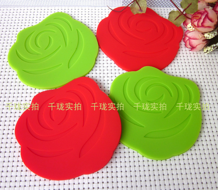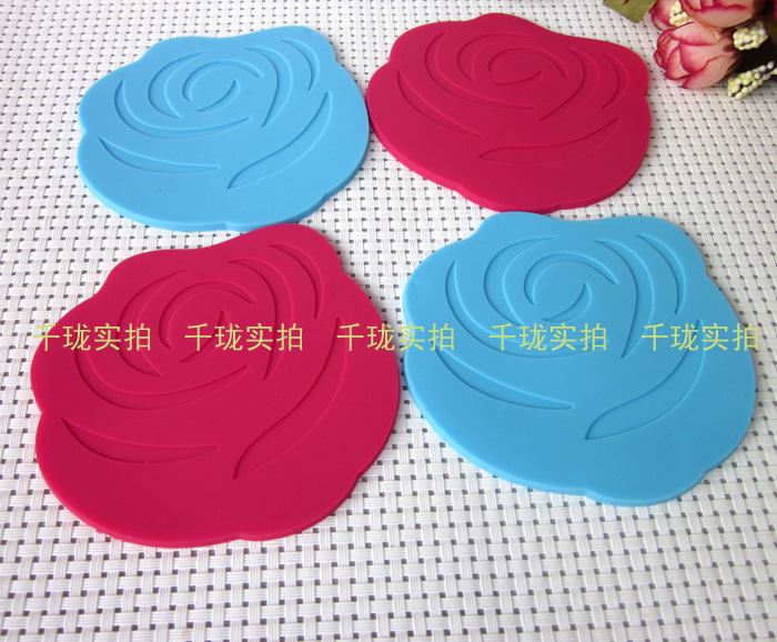 Moda Rosa de silicone coaster pad (2 peças)