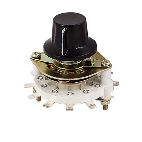 -. Feature : Product Name: Rotary Switch; Country of Manufacture: CHINA; Material: Metal, Ceramic, Plastic / Net Weight: 56g; Package Content: 1 x Rotary Switch;1 x Plastic Cap; Model: KCZ2*5 / Main Color: White,Silver Tone; Dimensions(Not IncludeTerminals): 42 x 46mm/1.65'x1.81'(D*H); Male Thread Diameter: 10mm/0.39' / D-Shape Shaft Diameter: 6mm / 0.24'; D-Shape Shaft Length: 10mm / 0.39' / Pin Number: 1 x 12; Contact Type: 1 Pole 5 Throw