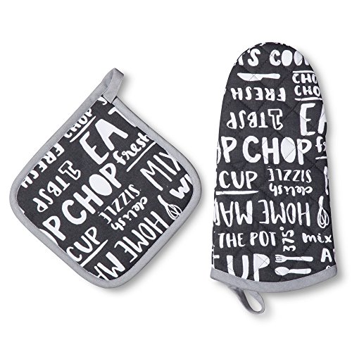 Room Essentials Kitchen Letters Oven Mitt and Potholder,Gray,Set of 2