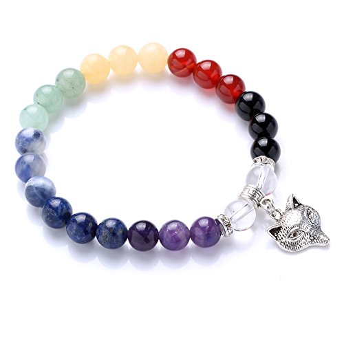 The natural inner length:2.1 inch,fit most of size;Beads diameter:8mm.There have seven beads and two rock crystal beads bracelet,7 chakra include:Amethyst,Lapis Lazuli,Sodalite,Green Aventurine,Yellow Jade,Dyed Carnelian,Black Obsidian.
