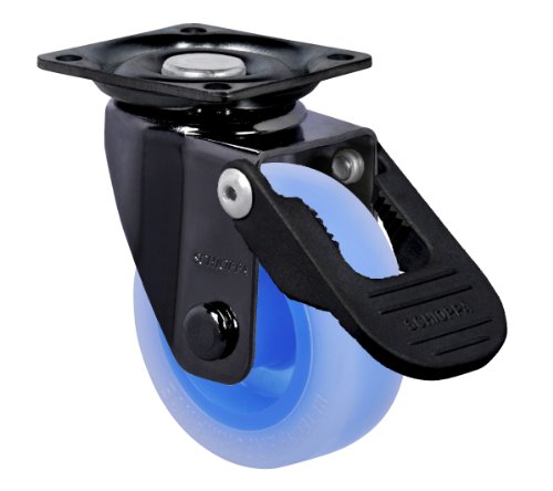 Schioppa, GLAP 210 Citrus Blue FPI–BR, 2" (50 mm) Swivel, Brake, Non-Marking Polyethylene Wheel, 90 lbs, Plate: 1-21/32 x 1-21/32" (BH 1-1/4 x 1-1/4")