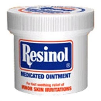 Resinol medicated ointment jar helps prevent and temporarily protects chafed, chapped or cracked skin.