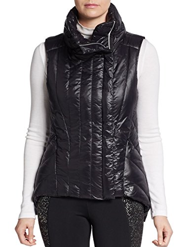 Betsey Johnson's puffer vest keeps you warm through chilly days! The asymmetrical front and handkerchief hem adds style and flair to your look. Quilted puffer vest with an asymmetrical zip front and back hem. High stand collar. Sleeveless. Concealed asymmetrical zip closure. Front zip pockets. Inner pocket. Back asymmetrical hem. Lined. About 27" from shoulder to hem. Body: Nylon. Fill: Polyester. Machine wash. Imported.Feature