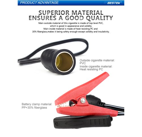 - Title : BESTEK 12V 24V battery clip on cigarette lighter socket extension cord MRS301A