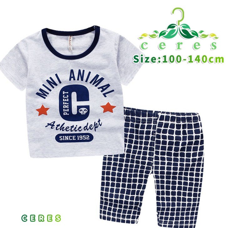 【製品仕様】■商品説明おしゃれアメカジ柄。伸縮性あり薄手素材使い。Tシャツ&ハーフイージーパンツのセットアップでお買い得! ■サイズ/寸法平置採寸 トップス 【100】肩幅:24cm バスト:29cm 総丈:36cm 【110】肩幅:25cm バスト:31cm 総丈:40cm 【120】肩幅:26cm バスト:32cm 総丈:42cm 【130】肩幅:27cm バスト:34cm 総丈:44cm 【140】肩幅:29cm バスト:36cm 総丈:47cm パンツ 【100】ウェスト:20cm 総丈:36cm 【110】ウェスト:21cm 総丈:38cm 【120】ウェスト:22cm 総丈:40cm 【130】ウェスト:23cm 総丈:42cm 【140】ウェスト:24cm 総丈:46cm■素材/材質コットン95% ポリエステル5%■色ネイビー