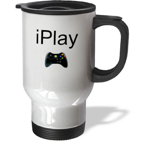 3dRose tm_180064_1 Iplay, Black Lettering on White Background, Picture of Game Controller Travel Mug, 14-Ounce, Stainless Steel
