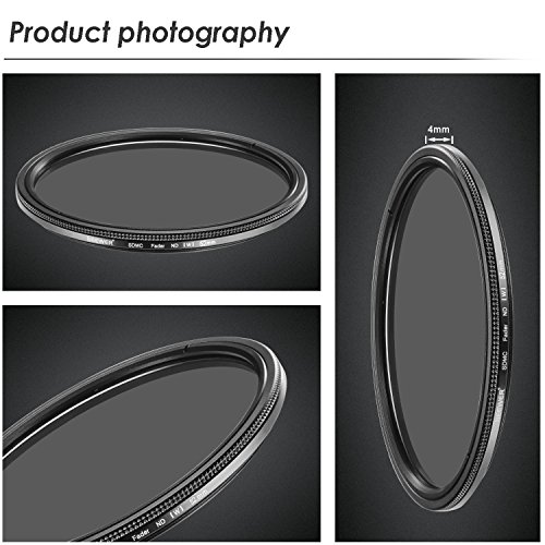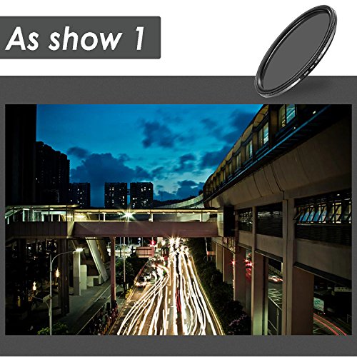 ND filters have different f-stop reduction numbers and transmittance thus generated can be applied for different shooting conditions, such as portraiture, water falls, fountain etc.