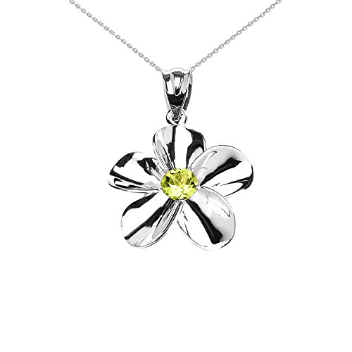 -. Binding : Jewelry -. Brand : Flower Collection -. Department : womens -. Feature : handcrafted Hawaiian Plumeria flower pendant necklace / faithfully handcrafted in 14k white gold in fine polished finish and individually hand-set with peridot / comes with free special gift packaging / made in the USA yet offered at factory direct jewelry P.R.Ice / ships from the manufacturer directly to the customers -. Label : Claddagh Gold -. Manufacturer : Claddagh Gold -. Model : QP0742W-14k -. MPN : QP0742W-14k -. PartNumber : QP0742W-14k -. ProductGroup : Jewelry -. ProductTypeName : FASHIONNECKLACEBRACELETANKLET -. Publisher : Claddagh Gold -. Studio : Claddagh Gold -. Title : 14k White Gold Hawaiian Plumeria Genuine Peridot Pendant Necklace