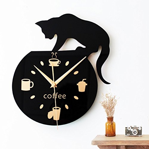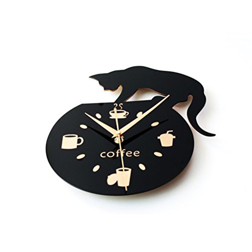 Package Including 1 * Silent Cartoon Wall Clock Cute Climbing Cat for Drinking Coffee Clock Wall Decoration Cup Coffee Clock 0