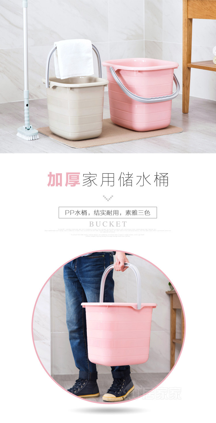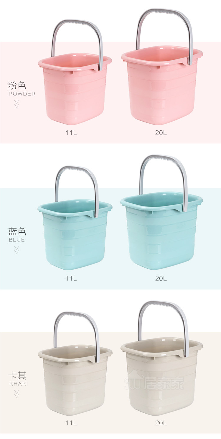 Summary: PP buckets, durable, elegant tri-color, simple and beautiful; square design, fit the wall, corner storage does not occupy children; non-slip handle, mention carry convenient, water, wipe the car, washing clothes, mopping Are applicable.