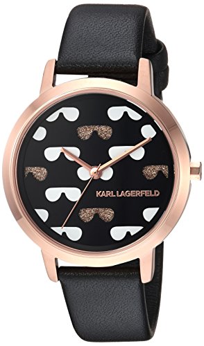 Karl Lagerfeld Women's Camille Quartz Stainless Steel and Leather Watch, Color: Rose Gold-Tone, Black (Model: KL2231)