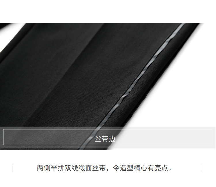 | 面料成分: | 70.9%聚酯纤维、21.9%粘纤、7.2%氨纶 |