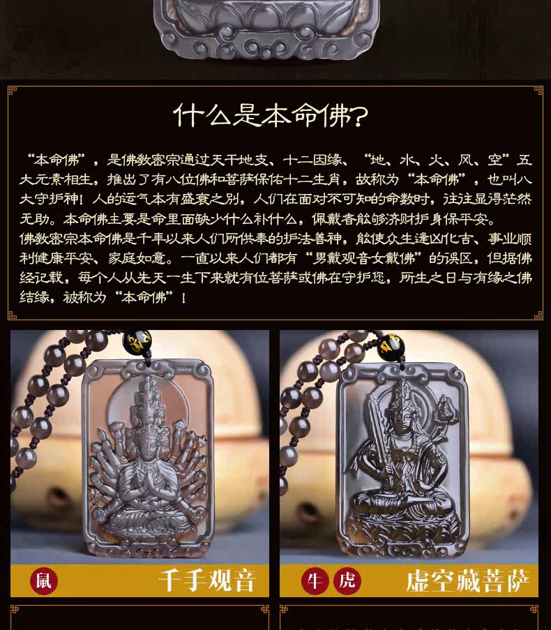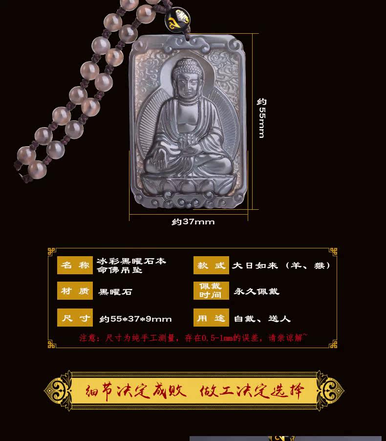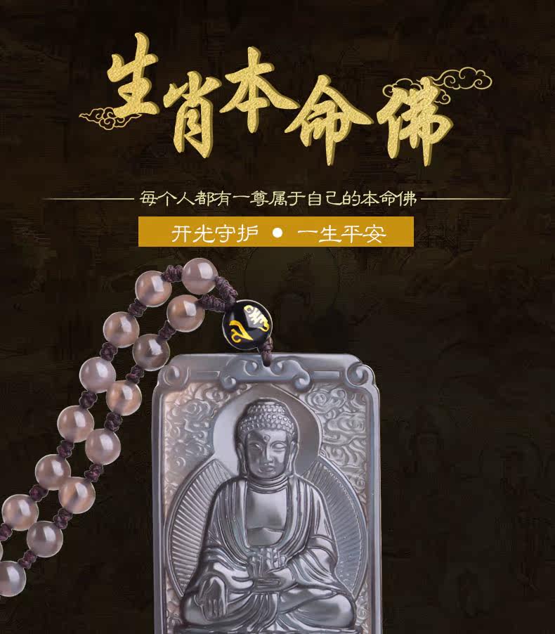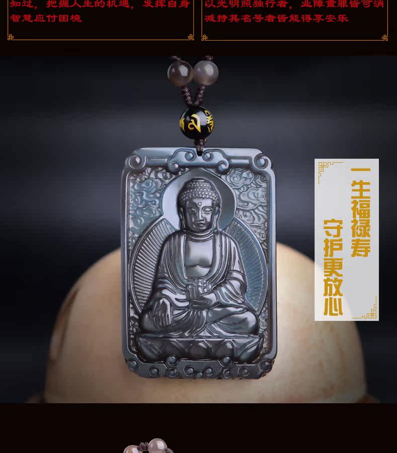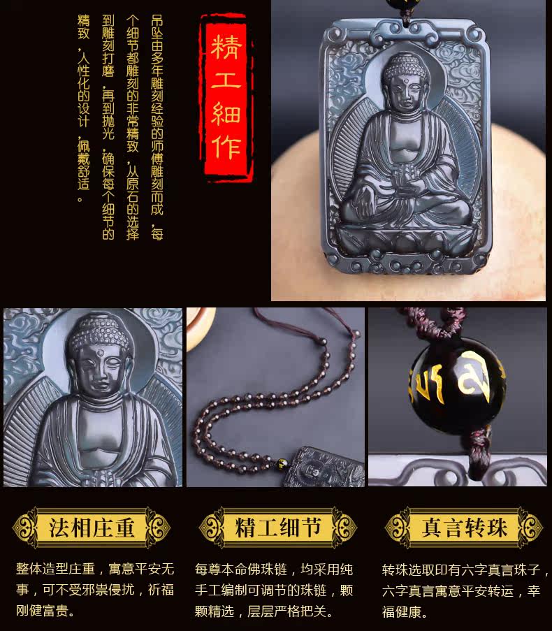 开光 天然冰彩黑曜石大日如来菩萨本命佛吊坠 生肖羊猴守护神项链