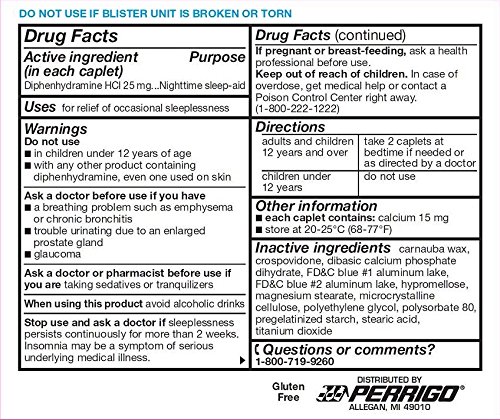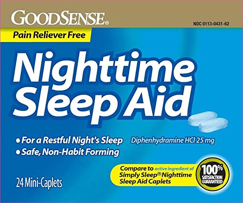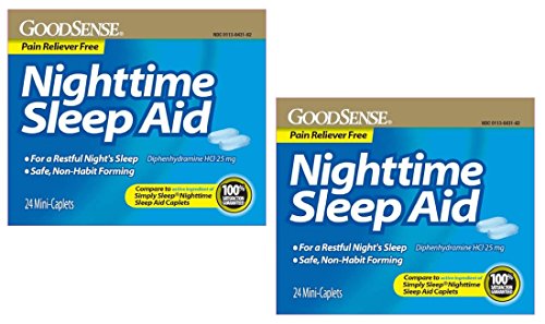 -. Feature : Compare to Simply Sleep Nighttime Sleep Aid Caplets / Diphenhydramine HCl 25 mg / For a restful Night's Sleep / Safe, Non-habit forming / 2 Pack, 24 mini-caplets (48 total caplets)