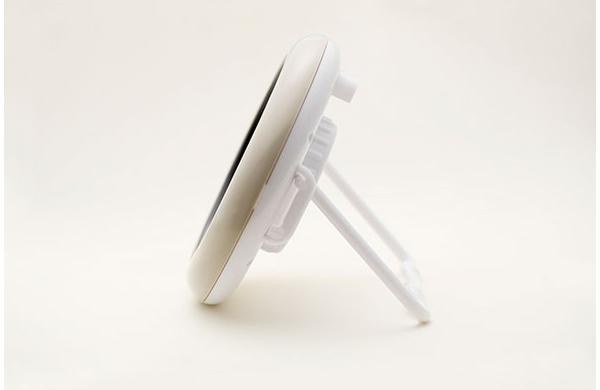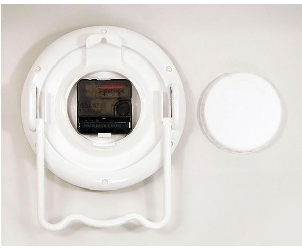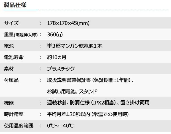 スムーズに動く秒針。水回りでも使用できる防滴仕様です。設置場所に困らないタオルハンガー兼スタンド付き。