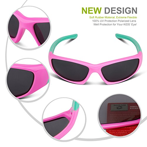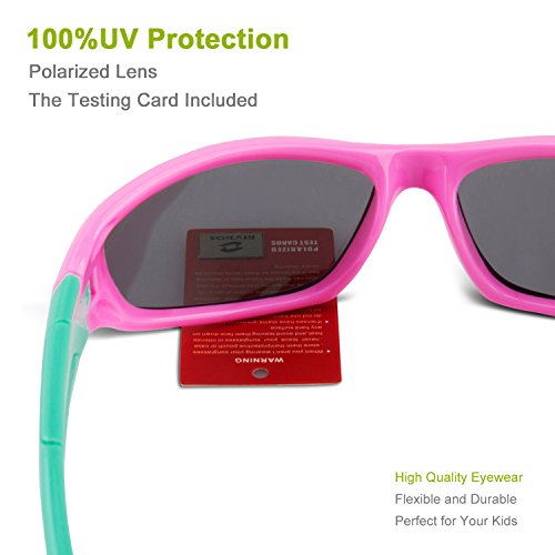 RIVBOS Children's Polarized Sunglasses Keep your child's eyes protected from the sun year round with RIVBOS sunglasses. Available in bright, bold colors, our sunglasses block 100% of the sun's harmful UVA & UVB rays and meet AOA (American Optometric Association) specifications for non-prescription sunglasses. Made of flexible Dupont rubber, they also feature polycarbonate impact & scratch resistant lenses. Polycarbonate impact and scratch resistant. Completely flexible and virtually unbreakable arms made of 100% Dupont rubber.Feature