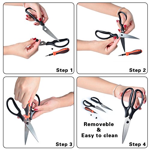 100% SATISFACTION GUARANTEE NO QUESTIONS ASKED: Our scissors go through rigorous inspection and testing to ensure our customers receive a High quality scissors If your product is damaged, defective or not to your standards we will replace it for you. Not completely satisfied with our kitchen scissors .We'll give you money back. Try It RISK FREE Today!