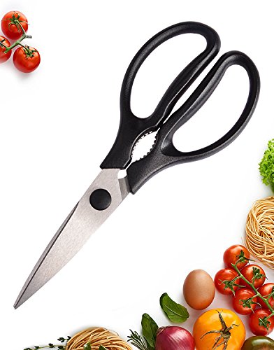 All-purpose utility scissors - Snip herbs, cut and open tough cardboard or plastic packaging, shape dough or trim pastry sheets, trim flower stems, trim pasta or noodles, peel shrimp, and even cut slices of pizza.