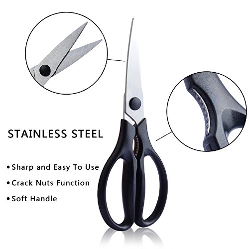 MULTIFUNCTION KITCHEN SCISSORS: This is the best scissors for easy cutting of meat, poultry, fish, vegetables, herbs and built in Cracking nuts function,You can easy to Cut any nuts with this scissors.