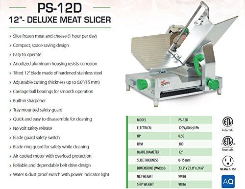 PRIMO PS-12 Anodized Aluminum Meat Slicer, Belt Drive Transmission, 12" Blade, 23-25/128" Width x 14-3/32" Height x 16-3/32" Depth