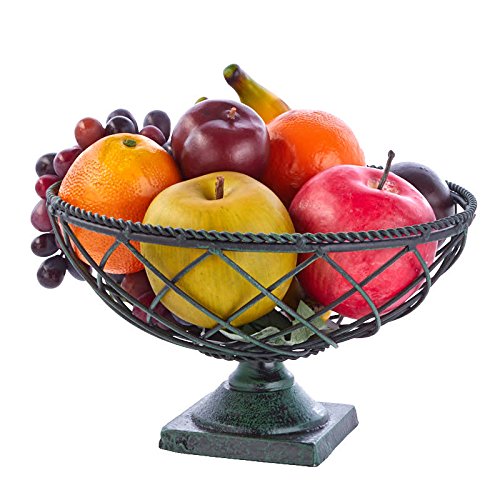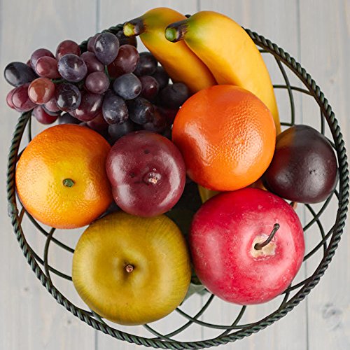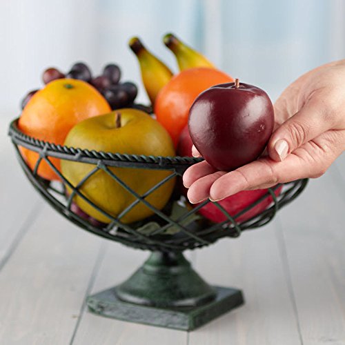 Green Pedestal Bowl of Artificial Mixed Fruit, Fruit Basket for Home Decor, Commercial Displays, and Crafting