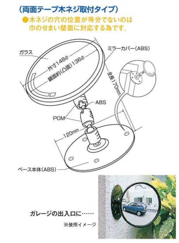留め具穴の開いたスタンドタイプの防犯用ミラーです。見えないところが、しっかり見えるので、死角を防いで安全確認、防犯に最適です。ガレージの出入り口等に設置してお使い下さい。 |